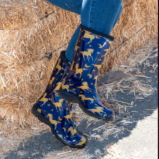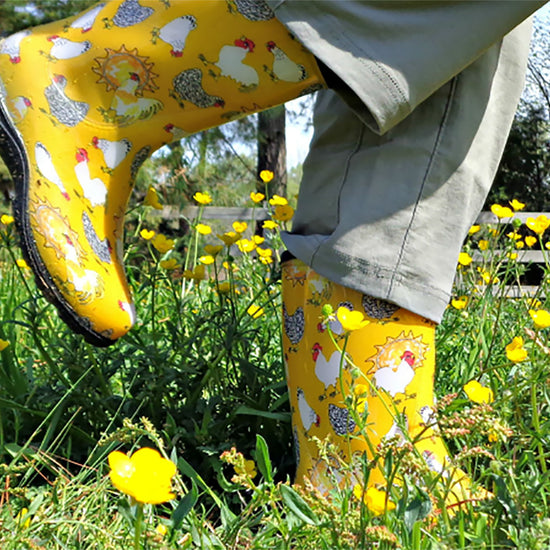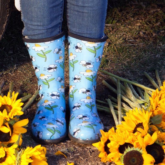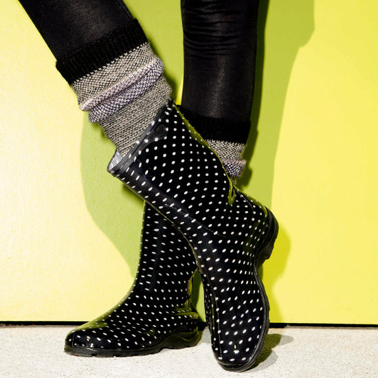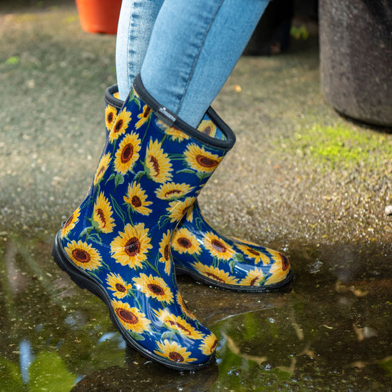 We're bringing Sloggers® signature colorful patterns and superior quality to the 10" Mid-Calf Rain, Mud & Muck Boot. Lower and wider than traditional rain boots, there is room for a wider calf or to tuck your pants into. Proudly made in the USA, their durable, 100% waterproof design makes them perfect as stylish garden boots, reliable lawn boots, or even light-duty farm boots. We ensure every pair is easy to clean, providing a quality you can feel and trust.