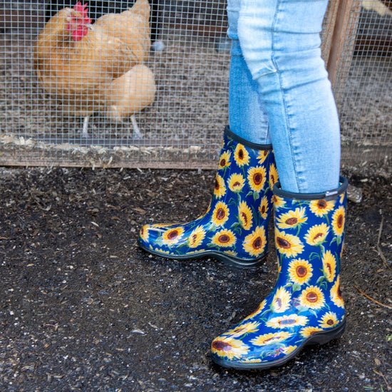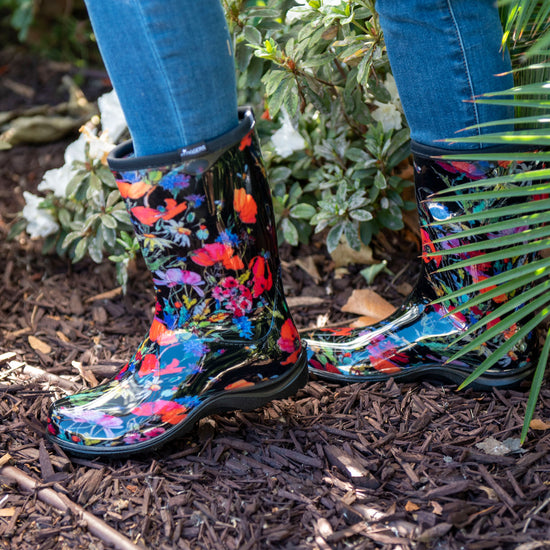 We're bringing Sloggers® signature colorful patterns and superior quality to the 10" Mid-Calf Rain, Mud & Muck Boot. Lower and wider than traditional rain boots, there is room for a wider calf or to tuck your pants into. Proudly made in the USA, their durable, 100% waterproof design makes them perfect as stylish garden boots, reliable lawn boots, or even light-duty farm boots. We ensure every pair is easy to clean, providing a quality you can feel and trust.